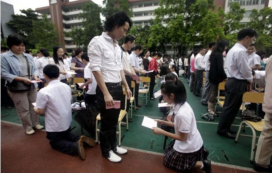5月4日下午,广东实验中学初中部,一场特别的青年礼在操场上举行。初二全体同学跪在操场上,从父母手里接过了父母写给自己的家书。不少同学称这是自己第一次“跪父母”。
