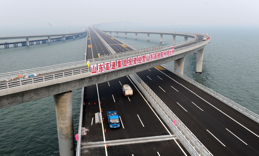 6月27日,山东高速胶州湾大桥通过了相关部门的交工验收。山东高速胶州湾大桥全长36.48公里,是目前世界上已建成的最长的跨海大桥,是国道主干线——青兰高速的起点段。新华社记者 李紫恒 摄